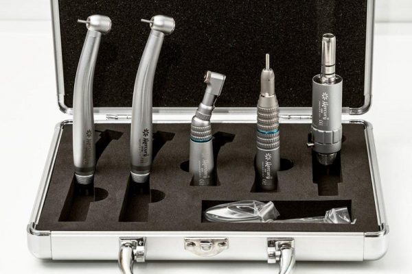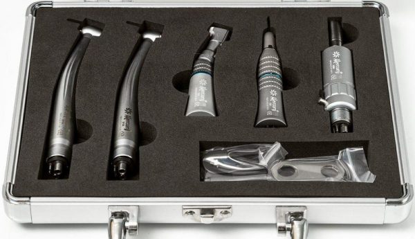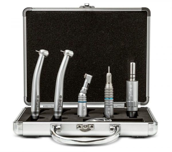 Mercury Kit New! – Набор наконечников состоит из двух кнопочных турбинных наконечников, пневмодвигателя, углового и прямого наконечника.