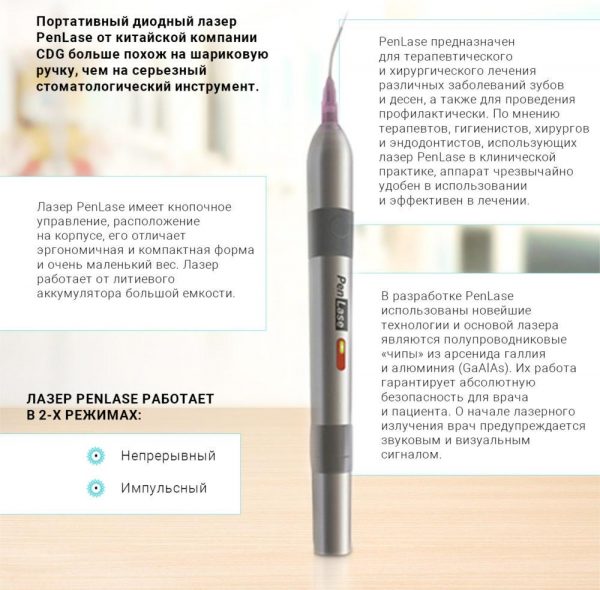 PenLase создан на основе новейших современных технологии полупроводникового лазера для лечения зубов и проведения профилактики.