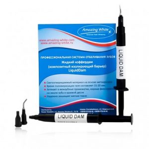 | Amazing White | 16% и 24% Перекиси водорода + наличие набора с химическим активатором Universal 25%, Extra 37%, Premium 38% (комбинированное отбеливание). | LED (Светодиод) | Голубой: 430-490 nm; | 30W | 3×15 мин. или 2×15 для максимального результата с набором Universal, Extra, Premium. | Не требуется при геле с 16% H2O2. | Есть выбор | Отбеливание на 2-3 тона. | На 7-12 тонов. | От 8 месяцев до 2 лет. | Ручка-аппликатор с полностью готовым для работы отбеливающим гелем. Наборы Professional/Advanced для двух-трех пациентов. Набор с химическим активатором (25-38%) в двухцилиндровом шприце со смешивающей насадкой – от 700 рублей на одного пациента. Набор на 4 пациентов. | ||